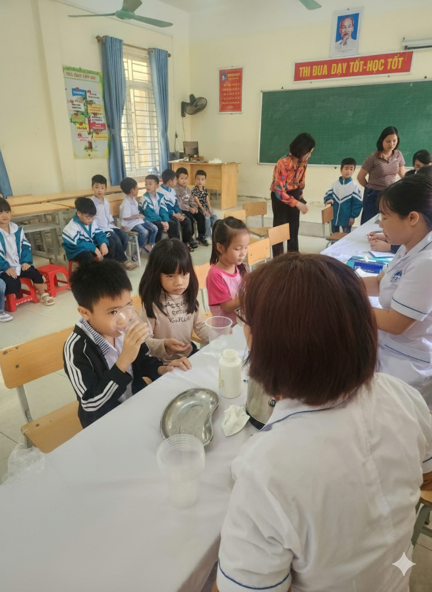 Thực hiện Công văn số 2214/SYT-QLYTDP ngày 06/10/2025 của Sở Y tế Ninh Bình về việc phối hợp chỉ đạo hoạt động tẩy giun cho học sinh các trường tiểu học năm 2025, Trung tâm Y tế Gia Viễn đã phối hợp với các Trạm Y tế xã, thị trấn và các trường tiểu học trên địa bàn tổ chức cho học sinh uống thuốc tẩy giun định kỳ, đảm bảo đúng đối tượng, đủ điều kiện sức khỏe và an toàn theo quy định.