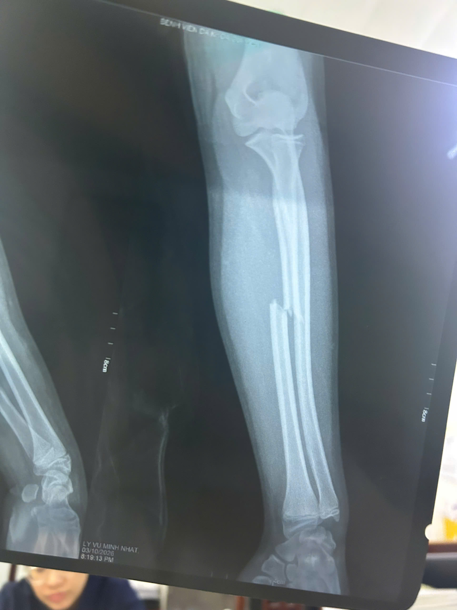 Bệnh nhân nam (14 tuổi, trú tại xã Gia Hưng, huyện Gia Viễn) nhập viện trong tình trạng đau chói, sưng nề và biến dạng vùng cẳng tay trái sau tai nạn sinh hoạt.